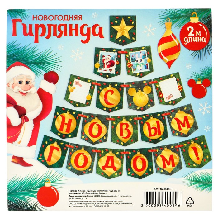 Гирлянда «С Новым Годом!», на ленте, 200 см, Микки Маус — Характеристики
