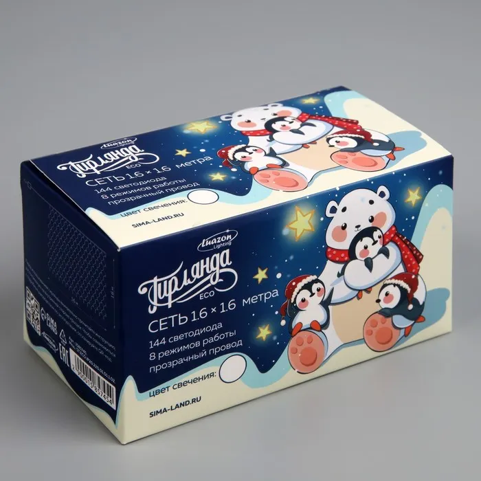 Гирлянда «Сеть» 1.6 × 1.6 м, IP20, прозрачная нить, 144 LED, 8 режимов, 220 В, свечение белое — Характеристики