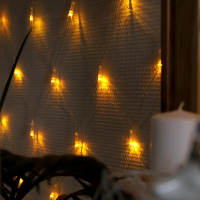 Гирлянда «Сеть» 1.6 × 1.6 м, IP20, прозрачная нить, 144 LED, 8 режимов, 220 В, свечение жёлтое — Характеристики