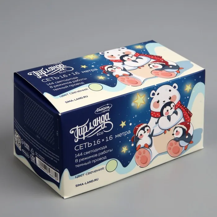 Гирлянда «Сеть» 1.6 × 1.6 м, IP20, тёмная нить, 144 LED, свечение тёплое белое, 8 режимов, 220 В — Характеристики