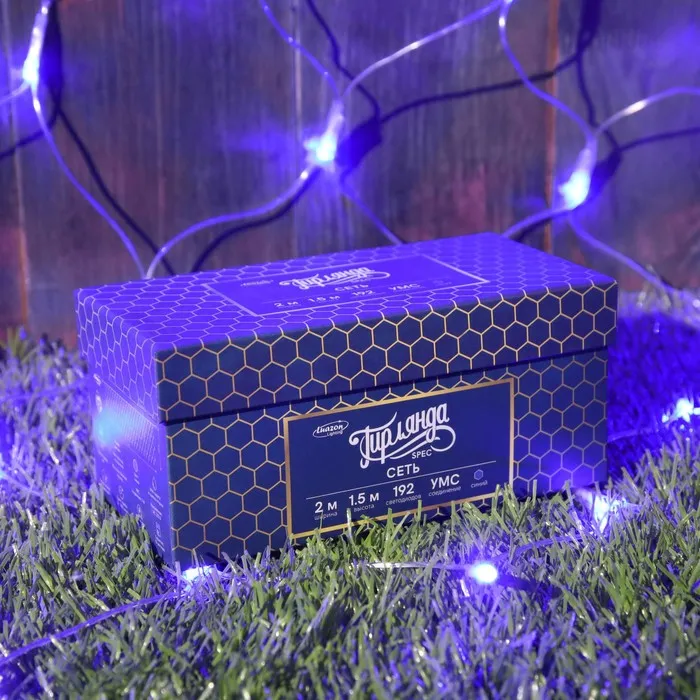 Гирлянда «Сеть» 2 × 1.5 м, IP44, УМС, прозрачная нить, 192 LED, свечение синее, 220 В — Характеристики