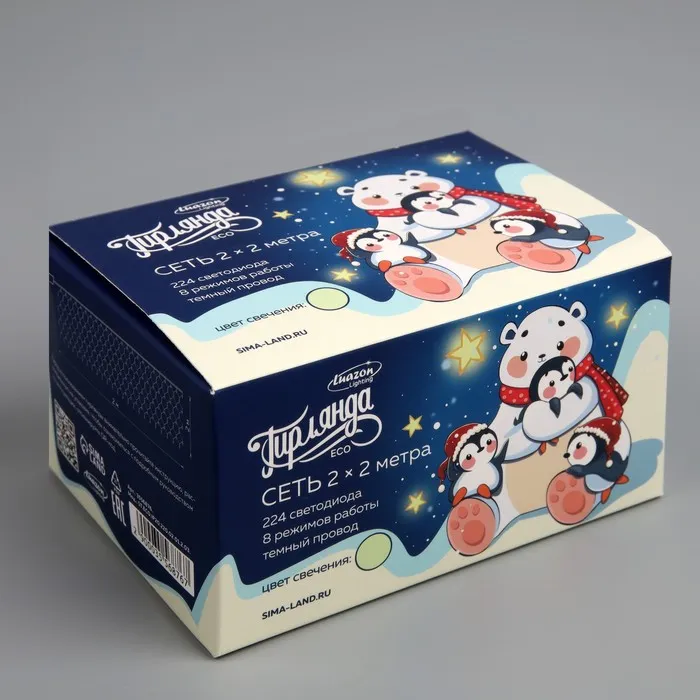 Гирлянда «Сеть» 2 × 2 м, IP20, тёмная нить, 224 LED, свечение тёплое белое, 8 режимов, 220 В — Характеристики