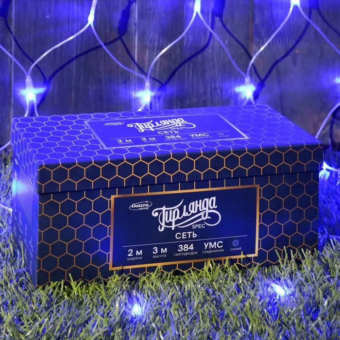 Гирлянда «Сеть» 2 × 3 м, IP44, УМС, прозрачная нить, 384 LED, свечение синее, 220 В — Характеристики