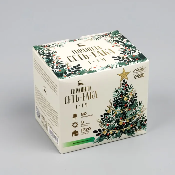 Гирлянда «Сеть-ёлка» 1 × 1 м, IP20, тёмная нить, 90 LED, свечение зелёное, 8 режимов, 220 В — Характеристики