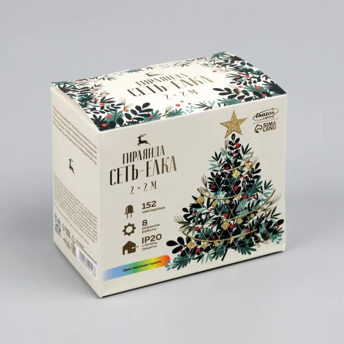 Гирлянда «Сеть-ёлка» 2 × 2 м, IP20, тёмная нить, 152 LED, свечение мульти, 8 режимов, 220 В — Характеристики