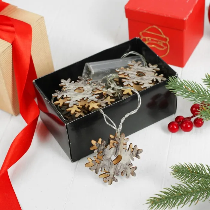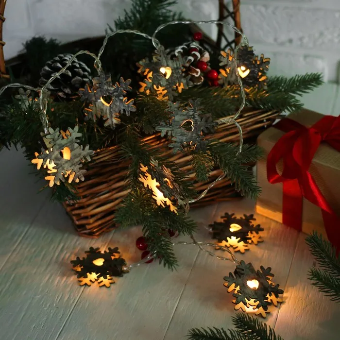 Гирлянда прекрасно впишется в интерьер, оформленный в скандинавском стиле, или станет акцентом в традиционном праздничном декоре. Её можно использовать для украшения окон, каминов, полок или даже новогодней ели. Благодаря питанию от батареек вы не привязаны к розетке — гирлянду легко разместить в любом удобном месте.