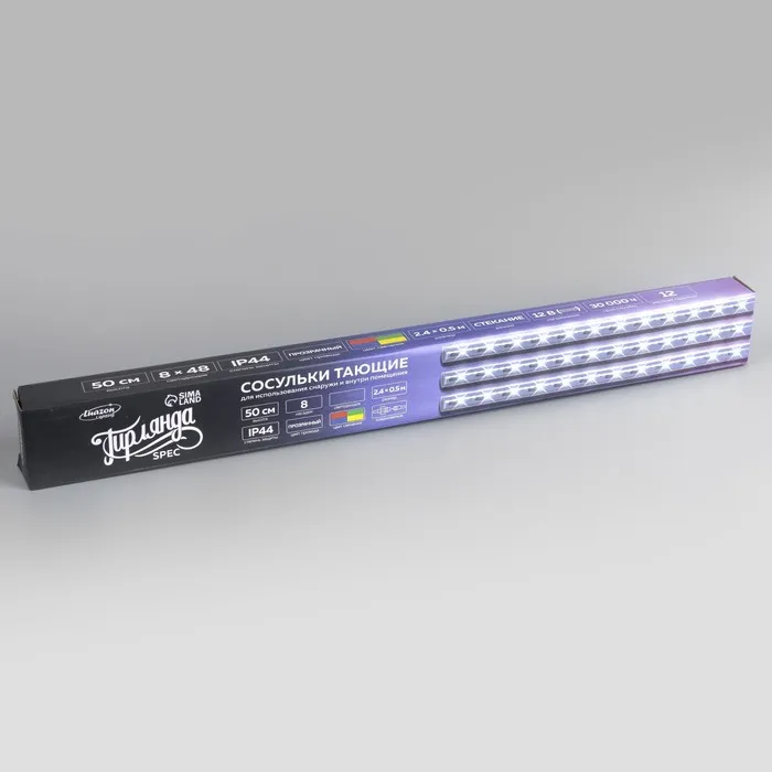 Гирлянда «Сосульки» 2.4 × 0.5 м, IP44, прозрачная нить, 96 LED, свечение мульти с эффектом стекания, 12 В — Характеристики