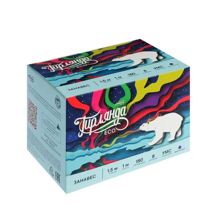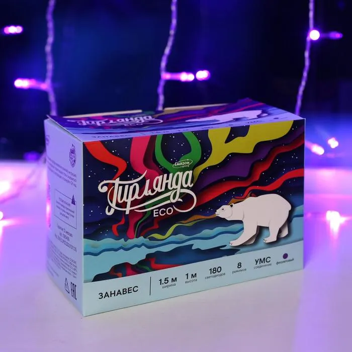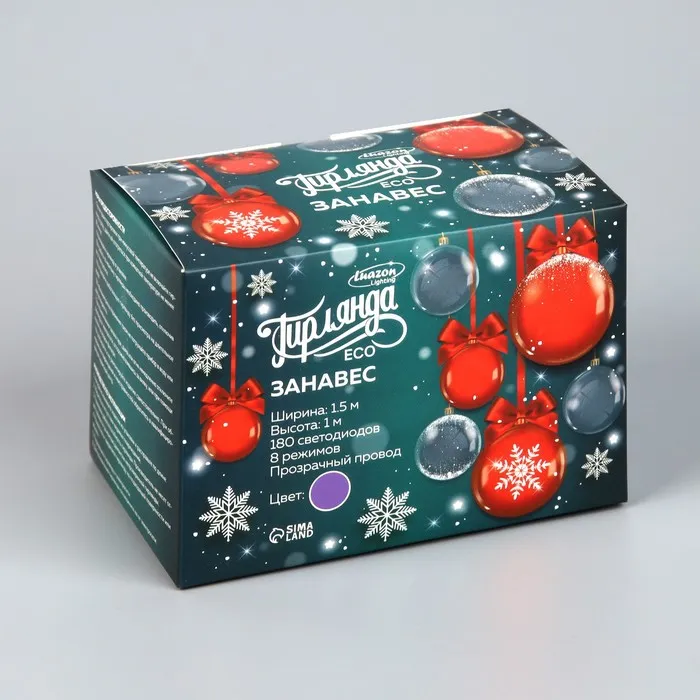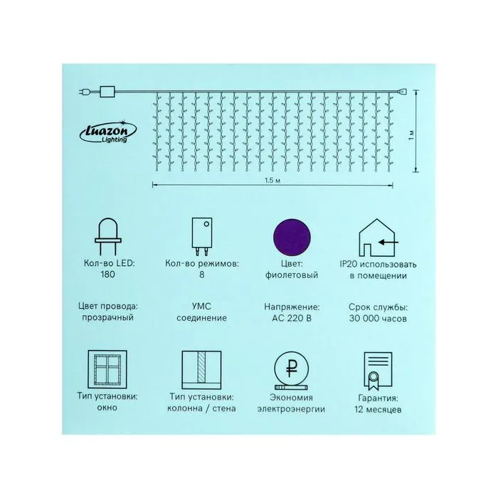 Гирлянда «Занавес» 1.5 × 1 м, IP20, прозрачная нить, 180 LED, свечение фиолетовое, 8 режимов, 220 В — Характеристики