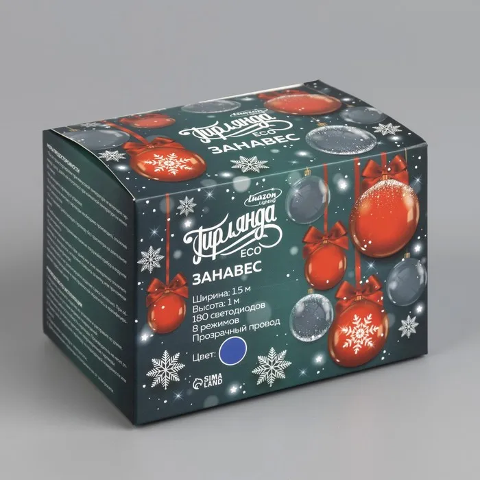 Гирлянда «Занавес» 1.5 × 1 м, IP20, прозрачная нить, 180 LED, свечение синее, 8 режимов, 220 В — Характеристики
