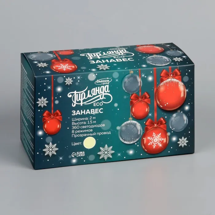 Гирлянда «Занавес» 2 × 1.5 м, IP20, прозрачная нить, 360 LED, свечение тёплое белое, 8 режимов, 220 В — Характеристики