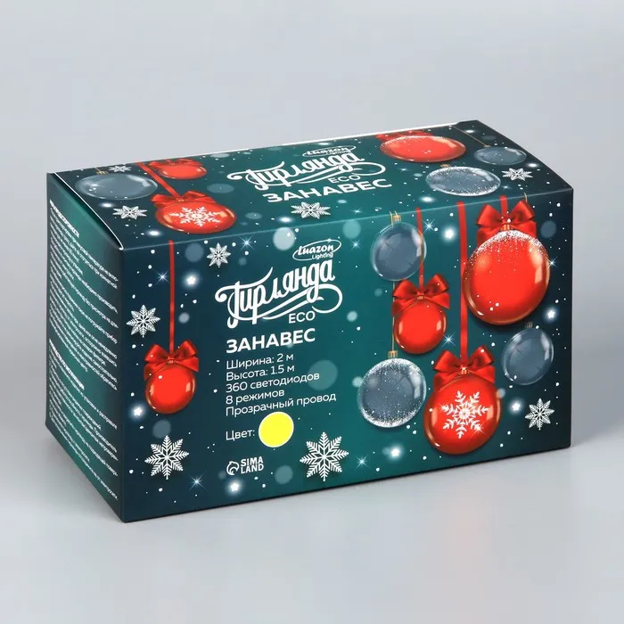 Гирлянда «Занавес» 2 × 1.5 м, IP20, прозрачная нить, 360 LED, свечение жёлтое, 8 режимов, 220 В — Характеристики