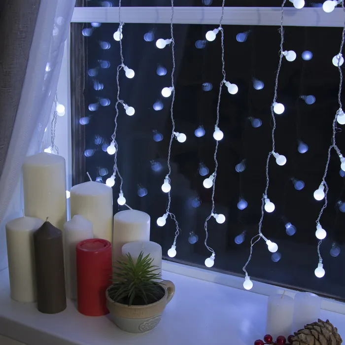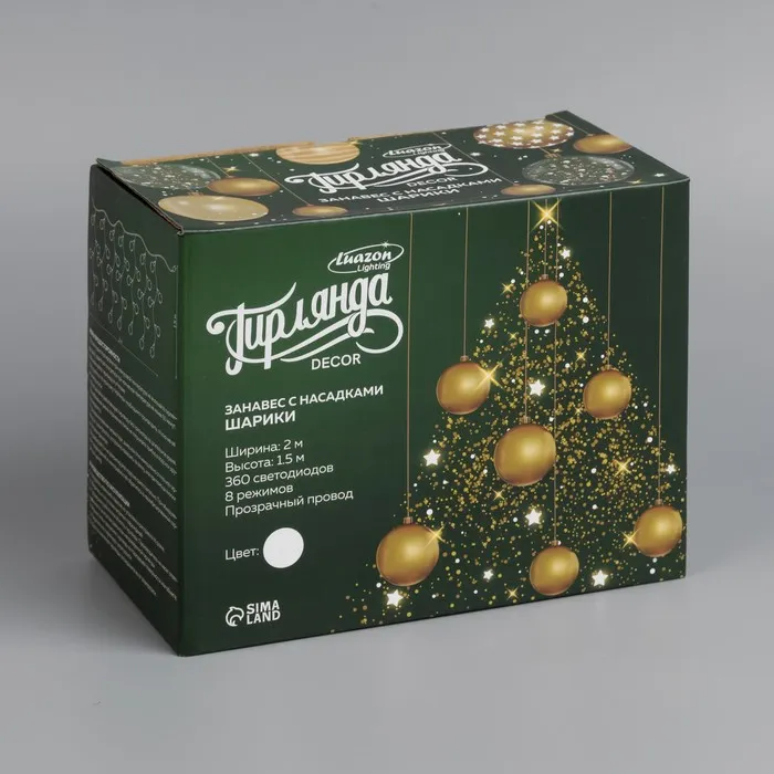 Гирлянда «Занавес» 2 × 1.5 м с насадками «Шарики», IP20, прозрачная нить, 360 LED, свечение белое, 8 режимов, 220 В — Характеристики
