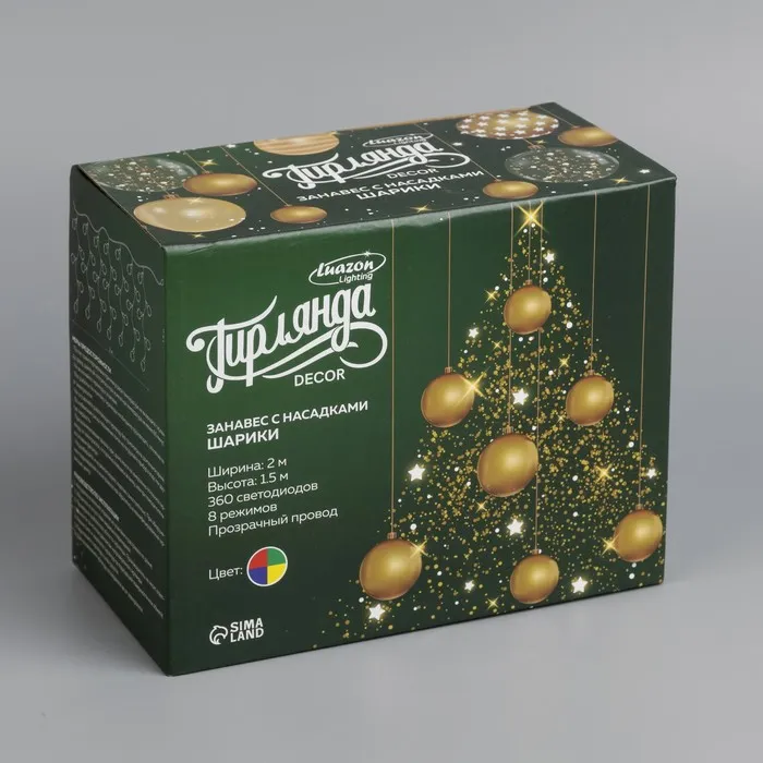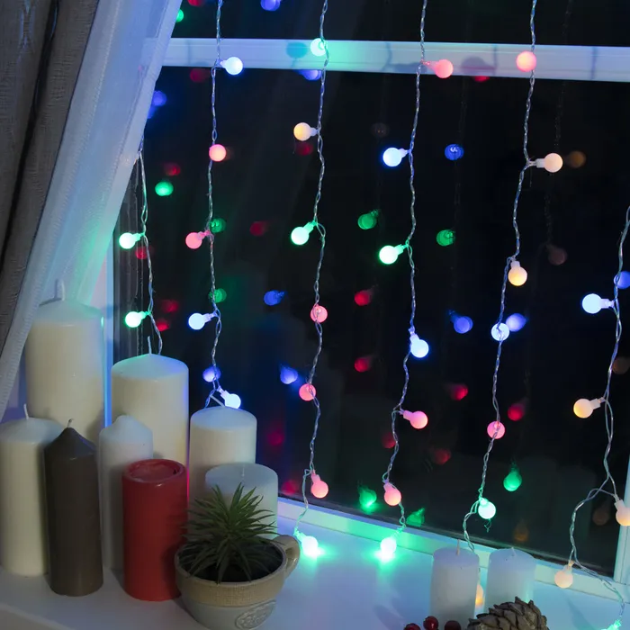 Гирлянда «Занавес» 2 × 1.5 м с насадками «Шарики», IP20, прозрачная нить, 360 LED, свечение мульти, 8 режимов, 220 В — Характеристики