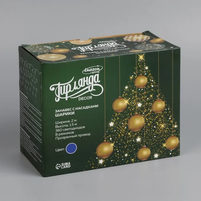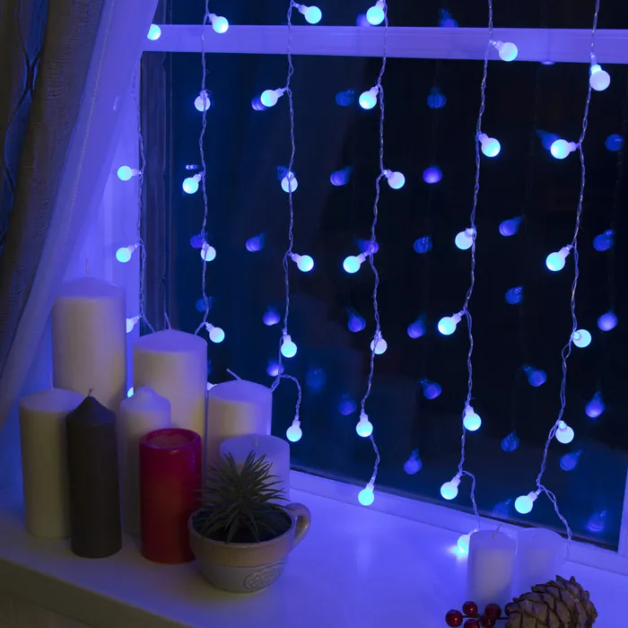 Гирлянда «Занавес» 2 × 1.5 м с насадками «Шарики», IP20, прозрачная нить, 360 LED, свечение синее, 8 режимов, 220 В — Характеристики