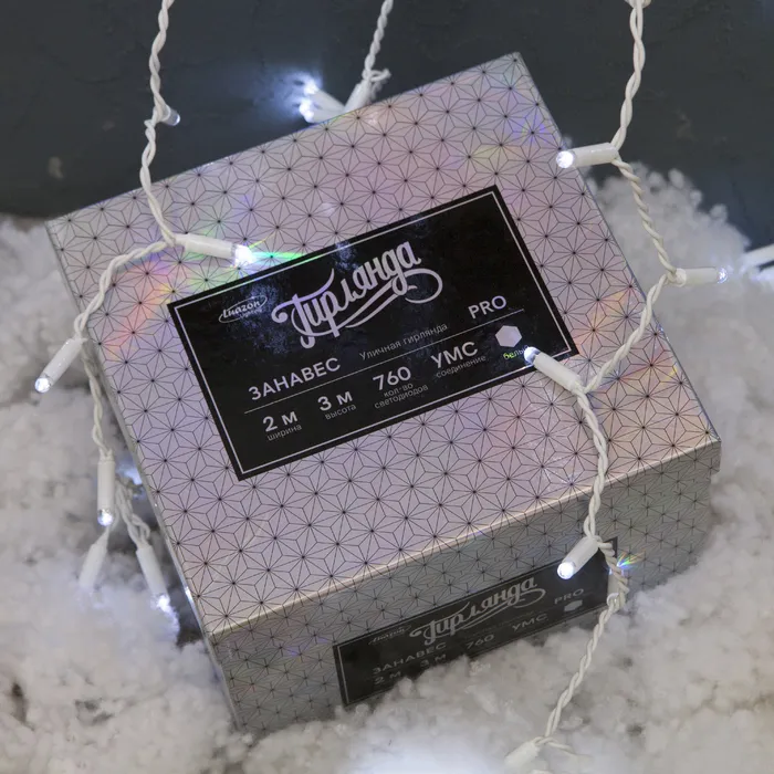 Гирлянда «Занавес» 2 × 3 м, IP65, УМС, белая нить, 760 LED, свечение белое, 220 В — Характеристики