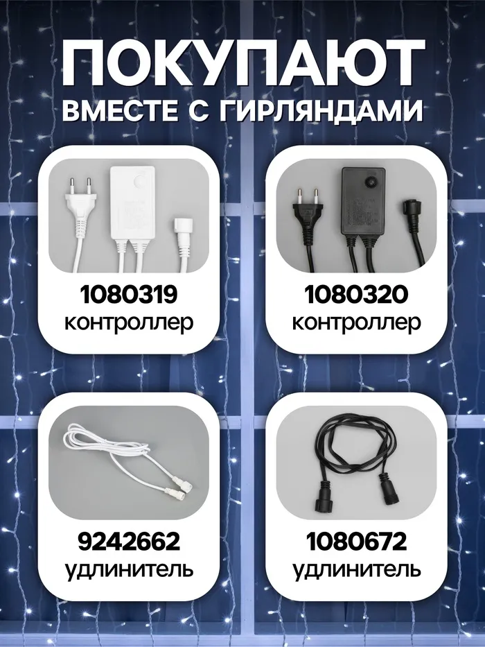 Примечание: Длина гирлянды указана без учета длины шнура питания — измеряется от первого до последнего светодиода, не включая провод.