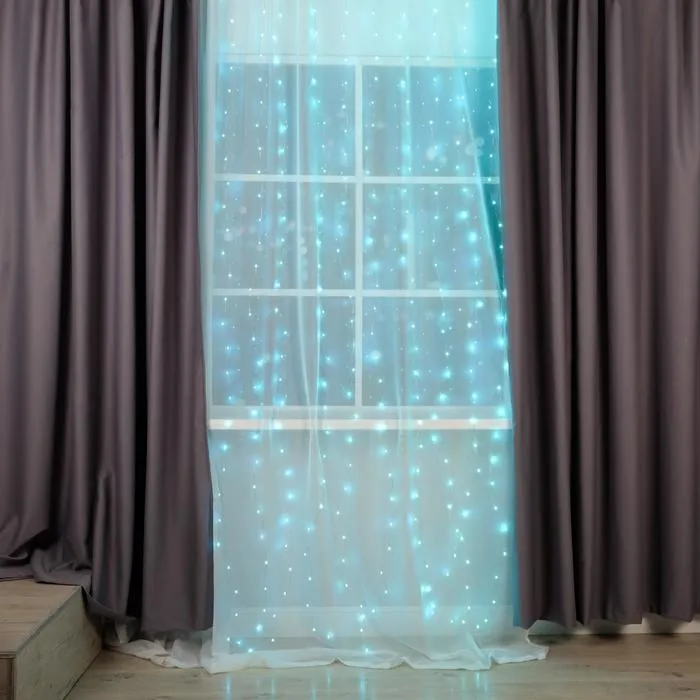 Гирлянда «Занавес» 2.8 × 3 м роса на крючках, с пультом, IP20, серебристая нить, 300 LED, свечение аквамарин, 8 режимов, USB — Характеристики