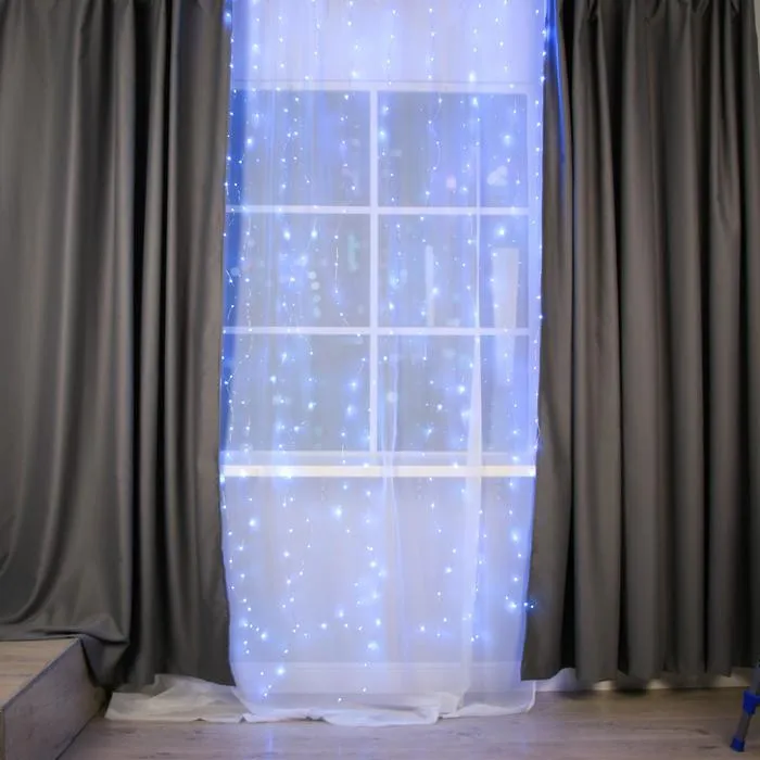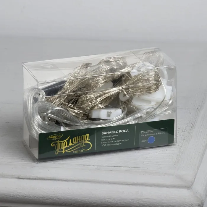 Гирлянда «Занавес» 2.8 × 3 м роса на крючках, с пультом, IP20, серебристая нить, 300 LED, свечение синее, 8 режимов, USB — Характеристики