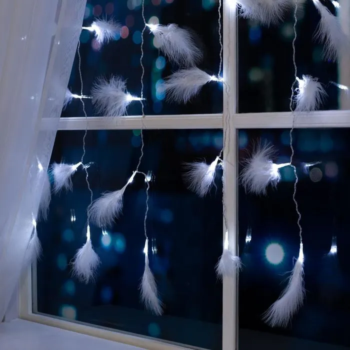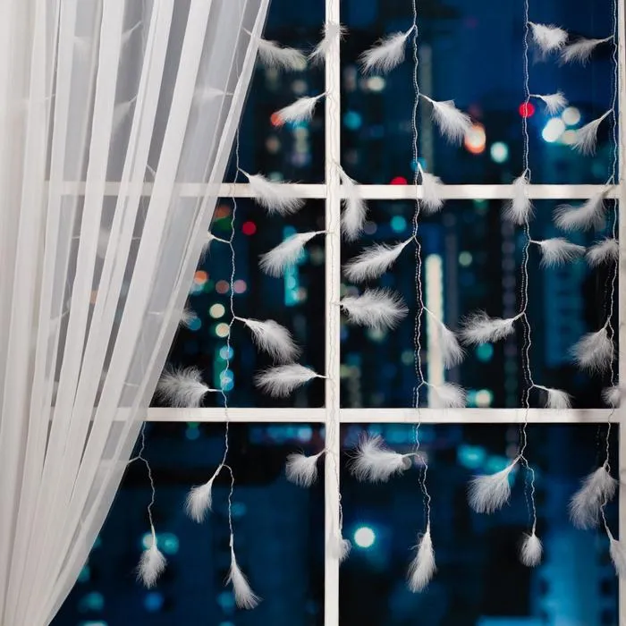 Гирлянда «Занавес» 3 × 1.4 м с насадками «Перья», IP20, прозрачная нить, 80 LED, свечение белое, 8 режимов, 220 В — Характеристики