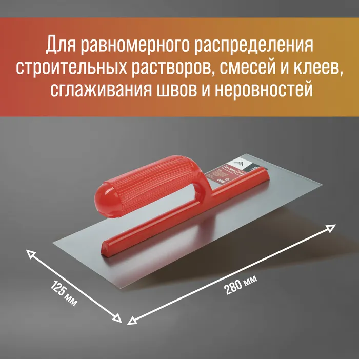 Гладилка ЛОМ, стальная, пластиковая рукоятка, прямая, 125×280 мм — Характеристики