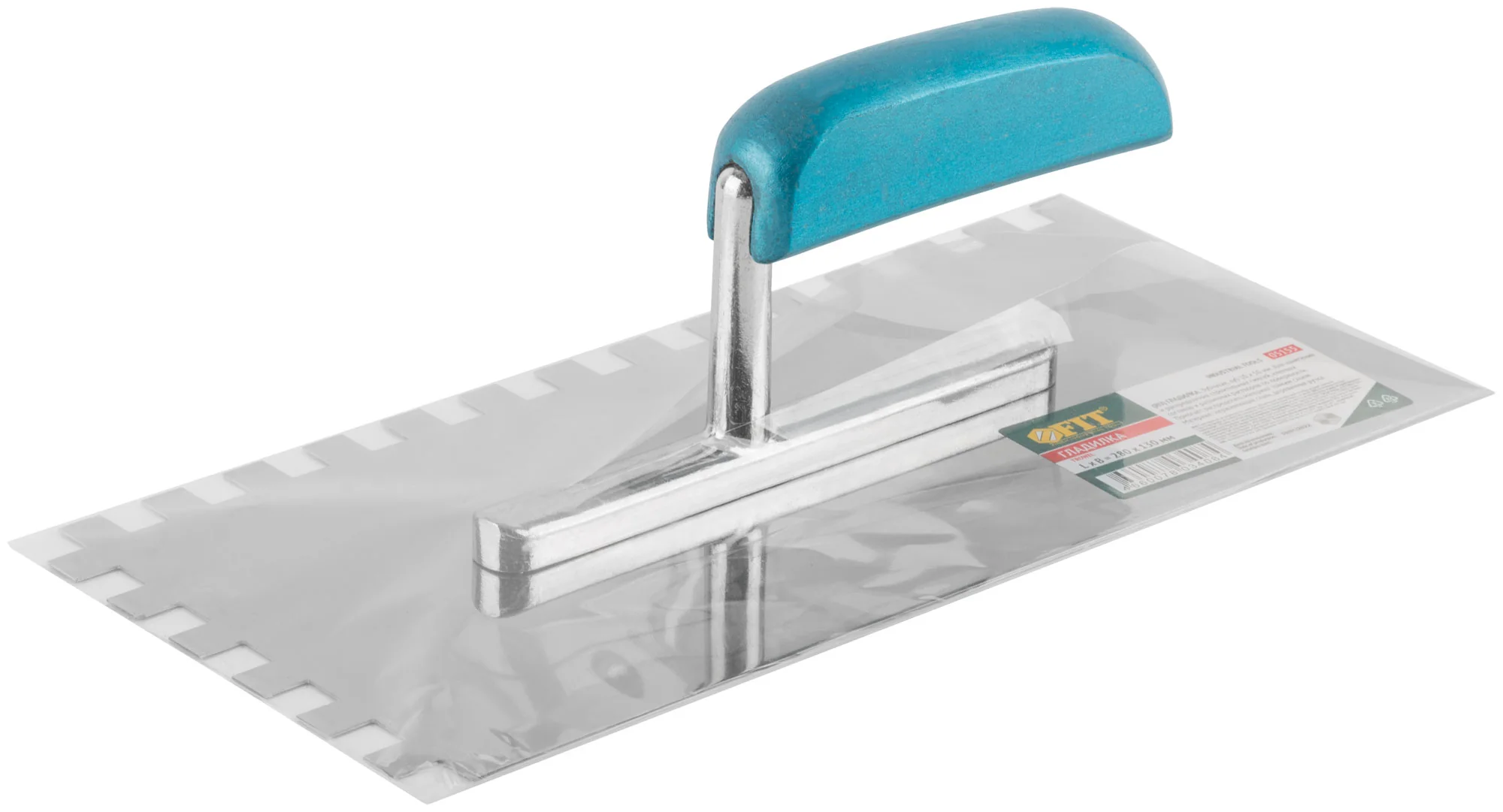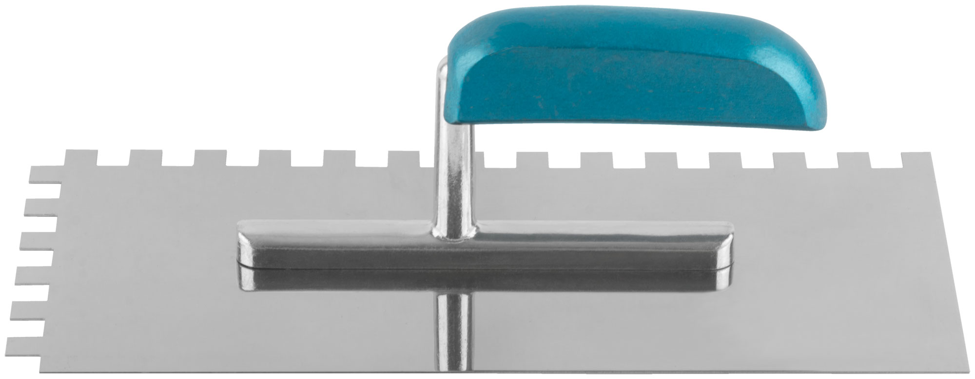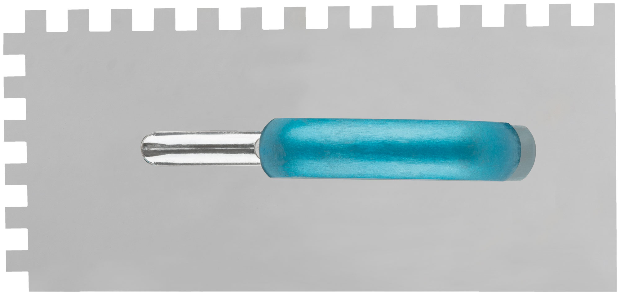 Идеально подходит для равномерного нанесения штукатурного раствора на стены и другие поверхности. Помогает сократить время работы и улучшить качество отделки благодаря зубчатой форме.