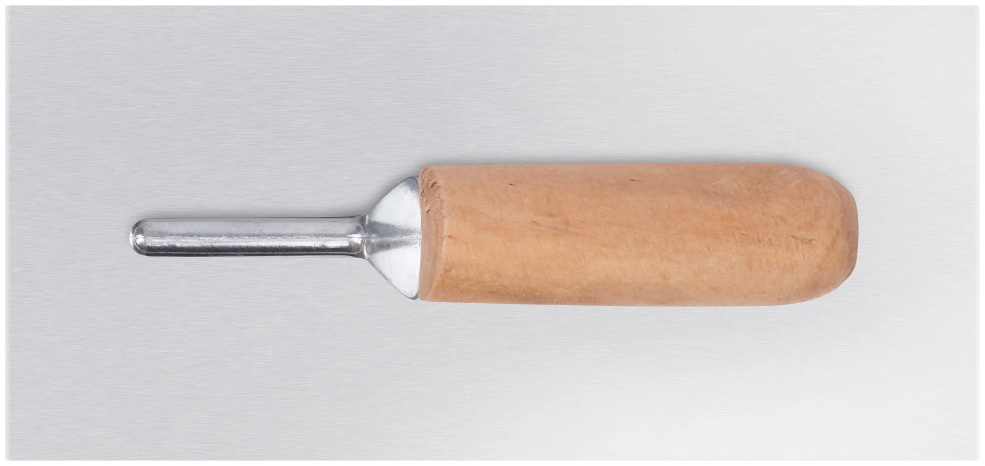 Гладилка выполнена из нержавеющей стали, которая обеспечивает долговечность и устойчивость к коррозии. Деревянная ручка гарантирует комфортный и надежный захват, снижая усталость во время длительной работы.