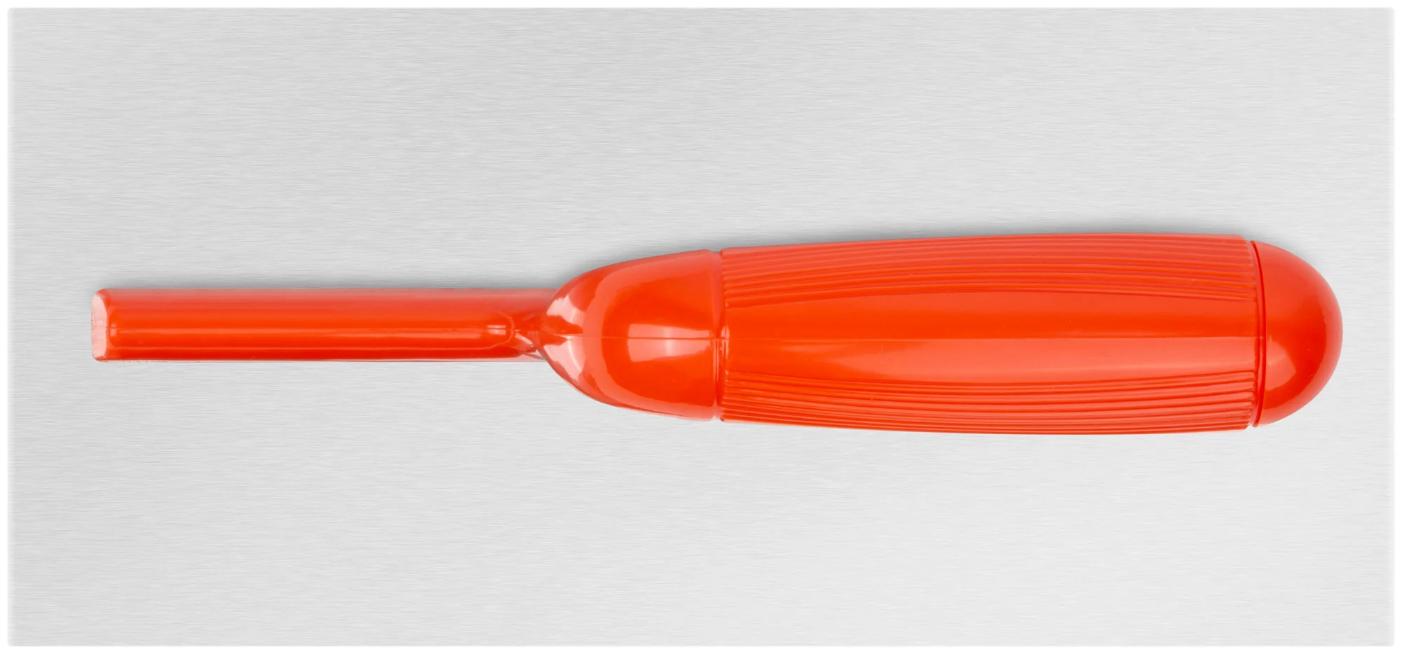 Изготовленная из нержавеющей стали, гладилка отличается прочностью и устойчивостью к коррозии, что гарантирует её долговечность. Пластиковая ручка обеспечивает удобный хват, снижая усталость при длительной работе.