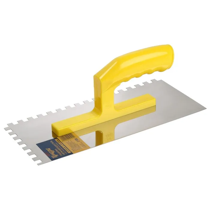 Гладилка ТУНДРА, нержавеющая сталь, пластиковая рукоятка, зуб 8×8 мм, 125×280 мм — Характеристики