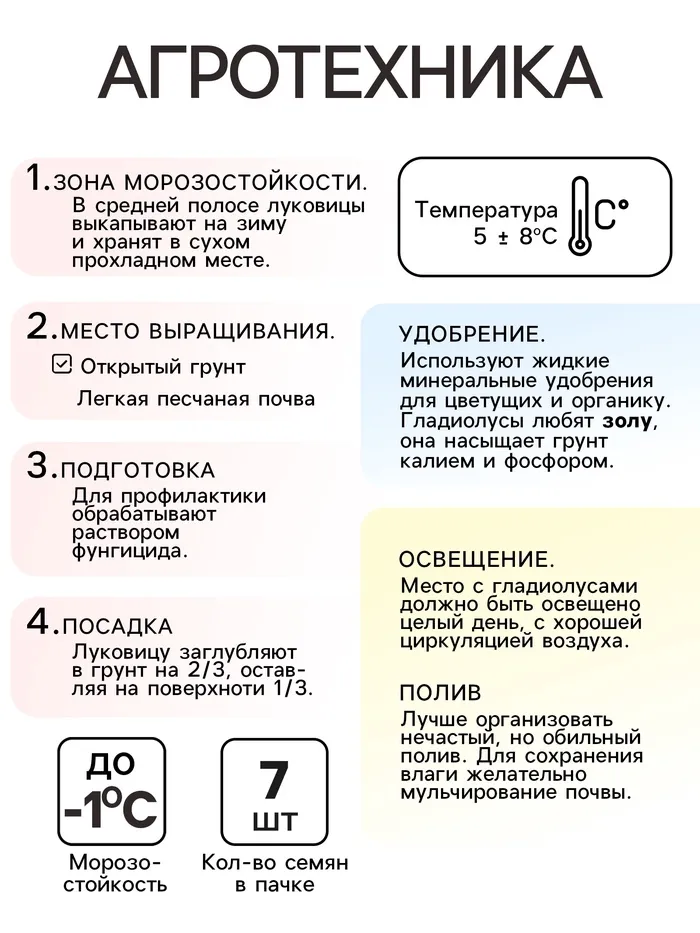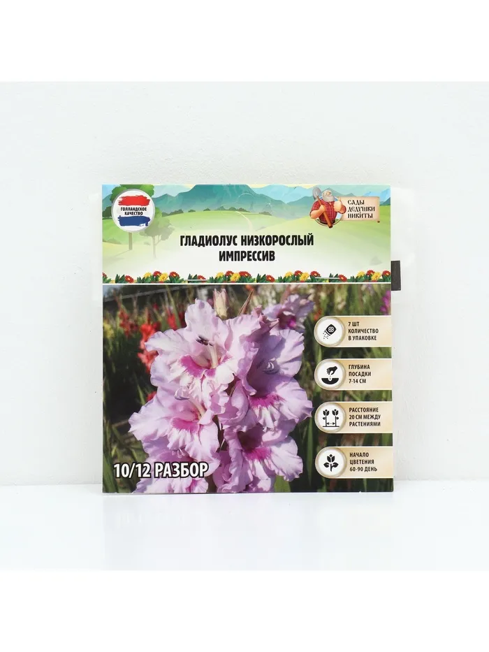 Гладиолус Низкорослый «Импрессив», луковица цветов в пакете с перфорацией, р-р 10+, 7 шт. — Характеристики
