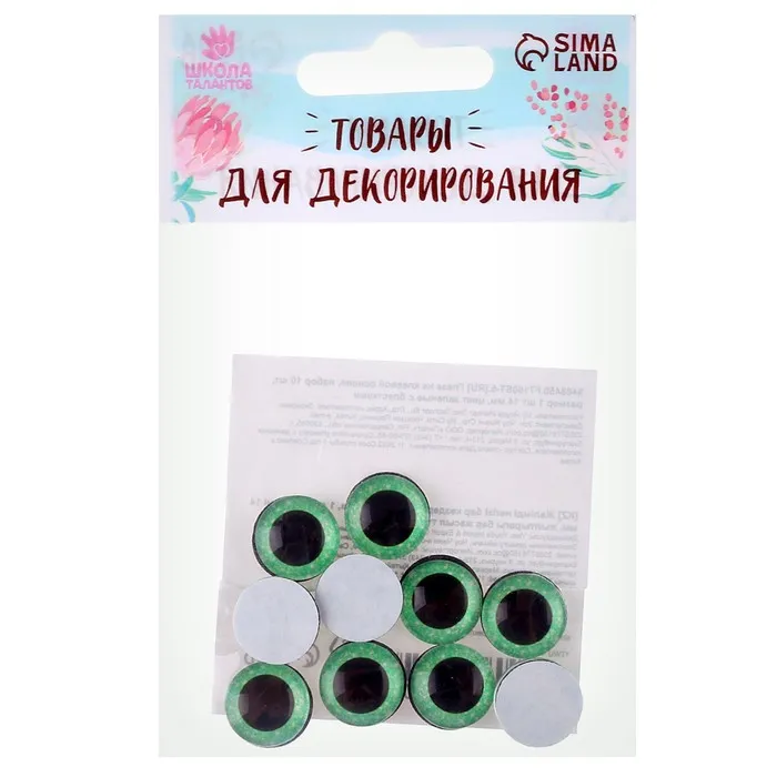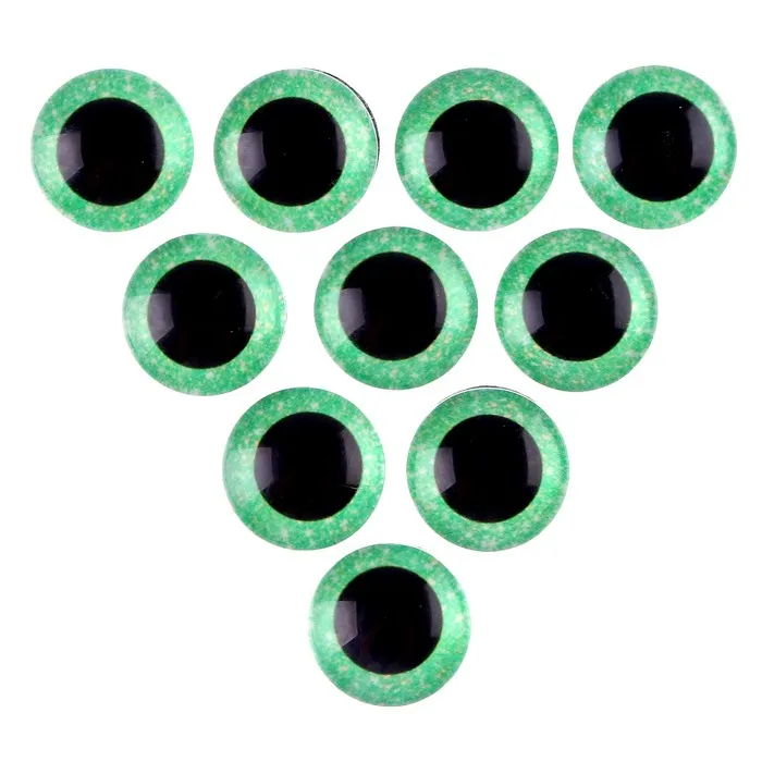 Глаза на клеевой основе, набор 10 шт., размер 1 шт. — 14 мм, цвет зелёный с блёстками — Характеристики