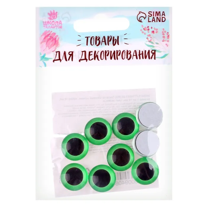 Глаза на клеевой основе, набор 10 шт., размер 1 шт. — 16 мм, зелёные — Характеристики