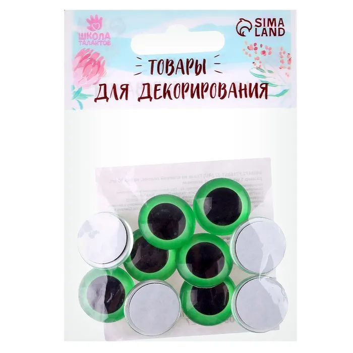 Глаза на клеевой основе, набор 10 шт., размер 1 шт. — 20 мм, зелёные — Характеристики