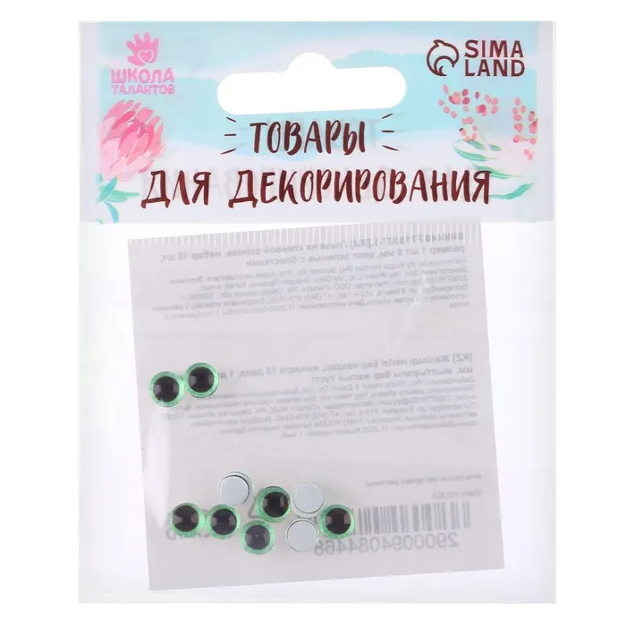 Глаза на клеевой основе, набор 10 шт., размер 1 шт. — 6 мм, цвет зелёный с блёстками — Характеристики