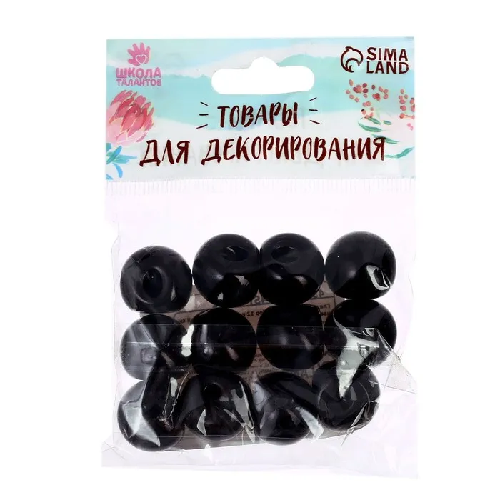 Глаза пришивные, набор 12 шт., размер 1 шт. — 1.8 см, чёрные — Характеристики