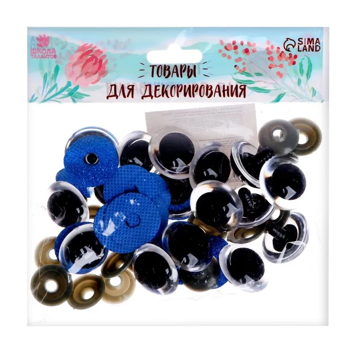 Глаза винтовые с заглушками, «Блёстки» набор 16 шт., размер 1 шт.: 2.6 см, синие — Характеристики