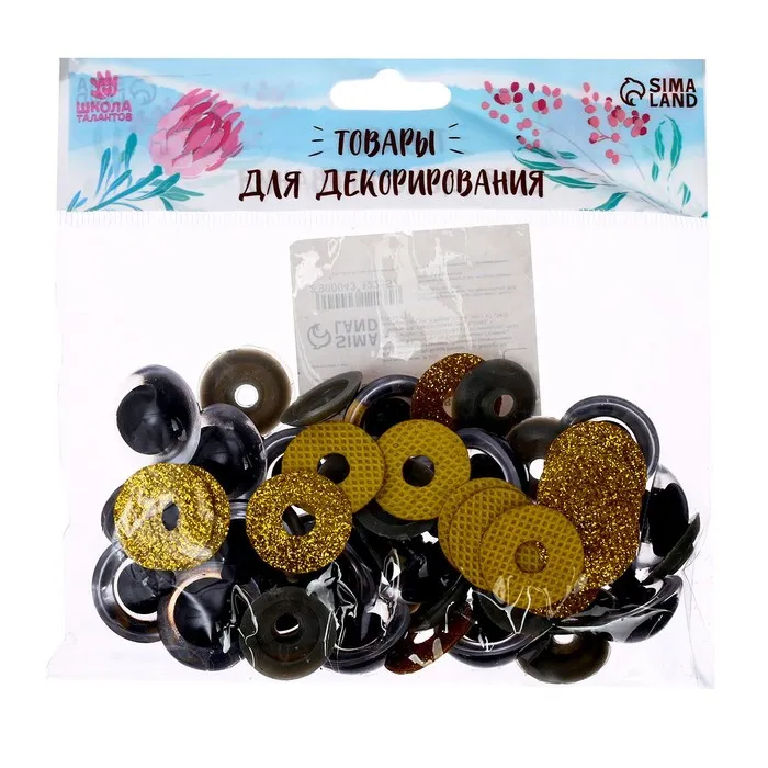 Глаза винтовые с заглушками, «Блёстки» набор 20 шт., размер 1 шт.: 2.2 см, жёлтые — Характеристики