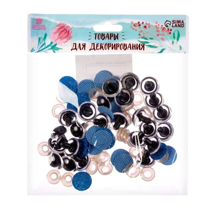 Глаза винтовые с заглушками, «Блёстки» набор 24 шт., размер 1 шт.: 1.8 см, синие — Характеристики