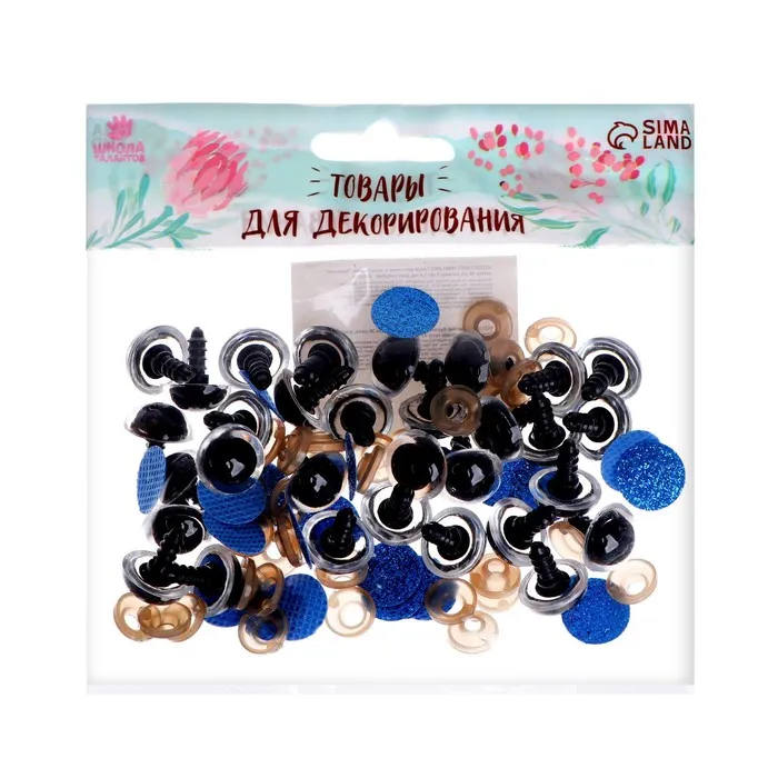 Глаза винтовые с заглушками, «Блёстки» набор 30 шт., размер 1 шт.: 1.6 см, голубые — Характеристики
