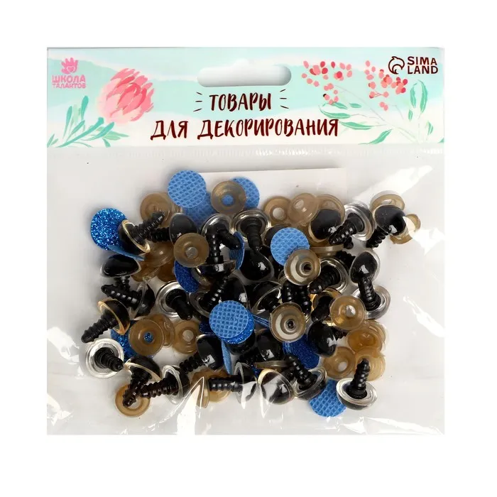 Глаза винтовые с заглушками, «Блёстки» набор 34 шт., размер 1 шт.: 1.4 см, синие — Характеристики