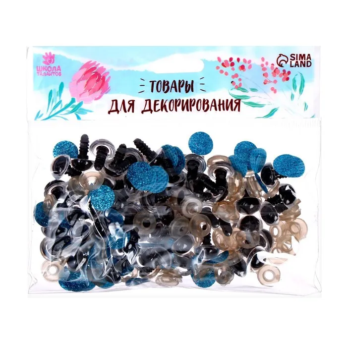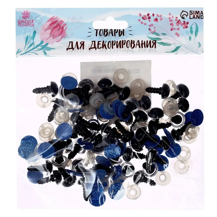 Глаза винтовые с заглушками, «Блёстки» набор 48 шт., размер 1 шт.: 1.2 см, голубые — Характеристики