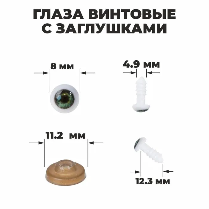Винтовые глазки крепятся с помощью заглушек. Предназначены для создания мягких игрушек.