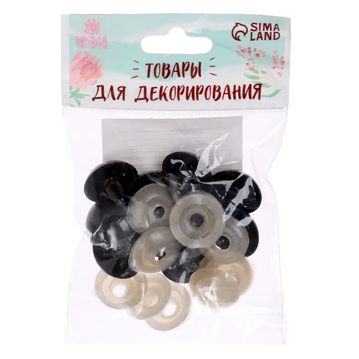Глаза винтовые с заглушками, набор 10 шт., размер 1 шт. — 2 см, цвет чёрный — Характеристики