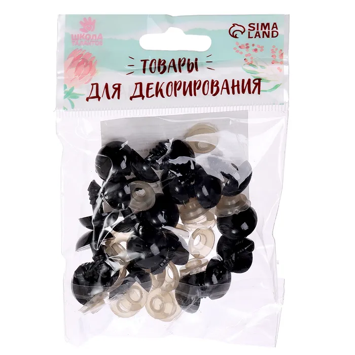 Глаза винтовые с заглушками, набор 20 шт., размер 1 шт. — 1,4 см, цвет чёрный — Характеристики