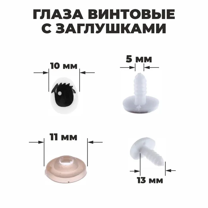 Винтовые глазки крепятся с помощью заглушек. Предназначены для создания мягких игрушек.