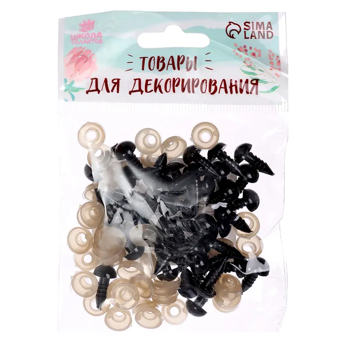 Глаза винтовые с заглушками, набор 40 шт., размер 1 шт. — 0,8 см, цвет чёрный — Характеристики