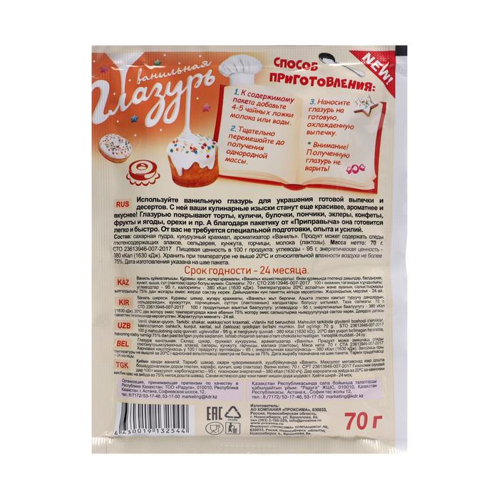 Глазурь «Приправыч», ванильная, 70 г — Характеристики