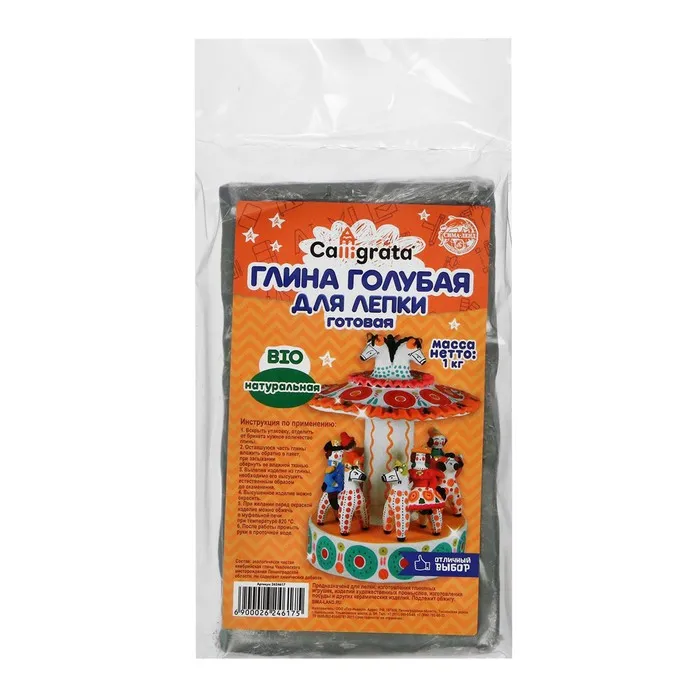 Глина для лепки натуральная голубая 1000 г, Calligrata, самоотвердевает (подходит для обжига) — Характеристики