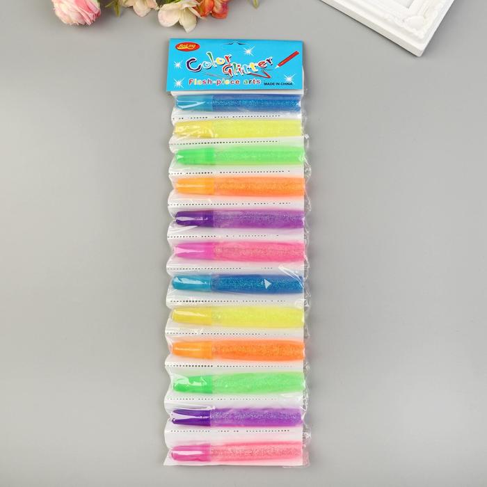Глиттер клеевой, (набор 12 шт.), пастель с блёстками в тюбике, 10 г