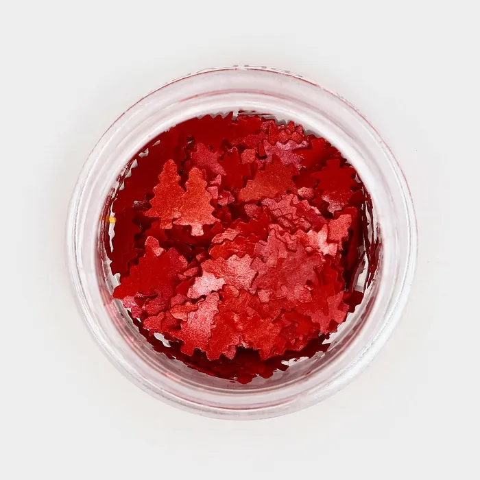 Добавьте изысканности и яркости своим сладким произведениям искусства с помощью пищевого глиттера фигурного "Елки" красные и сделайте каждое угощение поистине запоминающимся в этот прекрасный праздник!