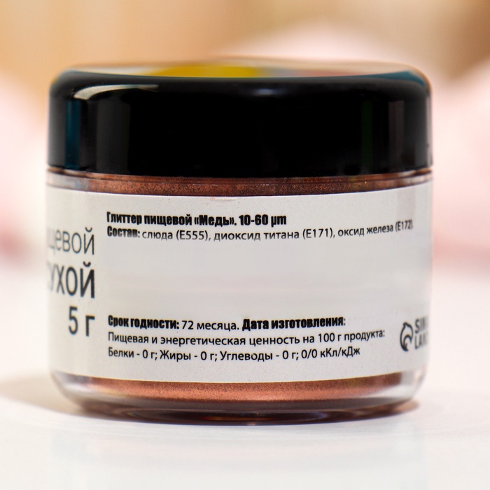 Глиттер кандурин пищевой КондиМир "Медь" (фракция 10-60 µm, 5 г) — это идеальное решение для создания яркого и эффектного декора ваших кулинарных произведений. Этот блестящий элемент предназначен для тех, кто хочет добавить изюминку и эстетическую привлекательность к своим десертам, выпечке и кондитерским изделиям.